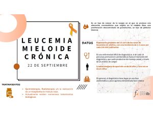 Hoy 22 de septiembre se conmemora en todo el mundo el día de la Leucemia Mieloide Crónica, un tipo de cáncer de la sangre que representa entre el 15-20% de los casos de leucemia en adultos.