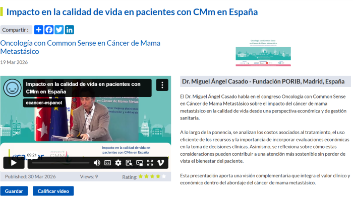 Participación de Miguel Ángel Casado, director de la Fundación PORIB, en el congreso Oncología con Common Sense en Cáncer de Mama Metastásico, con una visión... Leer más
