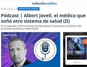Albert Jovell contribuyó a replantear el paradigma de la relación médico-paciente dejando un legado que, 10 años más tarde de su partida, sigue presente. Los podcasts adjuntos, publicados en la revista Redacción Médica, narran la vida profesional de Jovell, así como sus intereses por las ciencias sociales tras sus estudios de medicina, que le llevaron a ser bautizado como “el médico social”. Consta de dos partes, una primera hasta 2001, año en el cual el doctor pasó a ser paciente, y una segunda, donde se cumplieron varios de sus propósitos como, por ejemplo, la Declaración de Barcelona en 2003 que sería la base de la creación posterior del Foro Español de Pacientes.