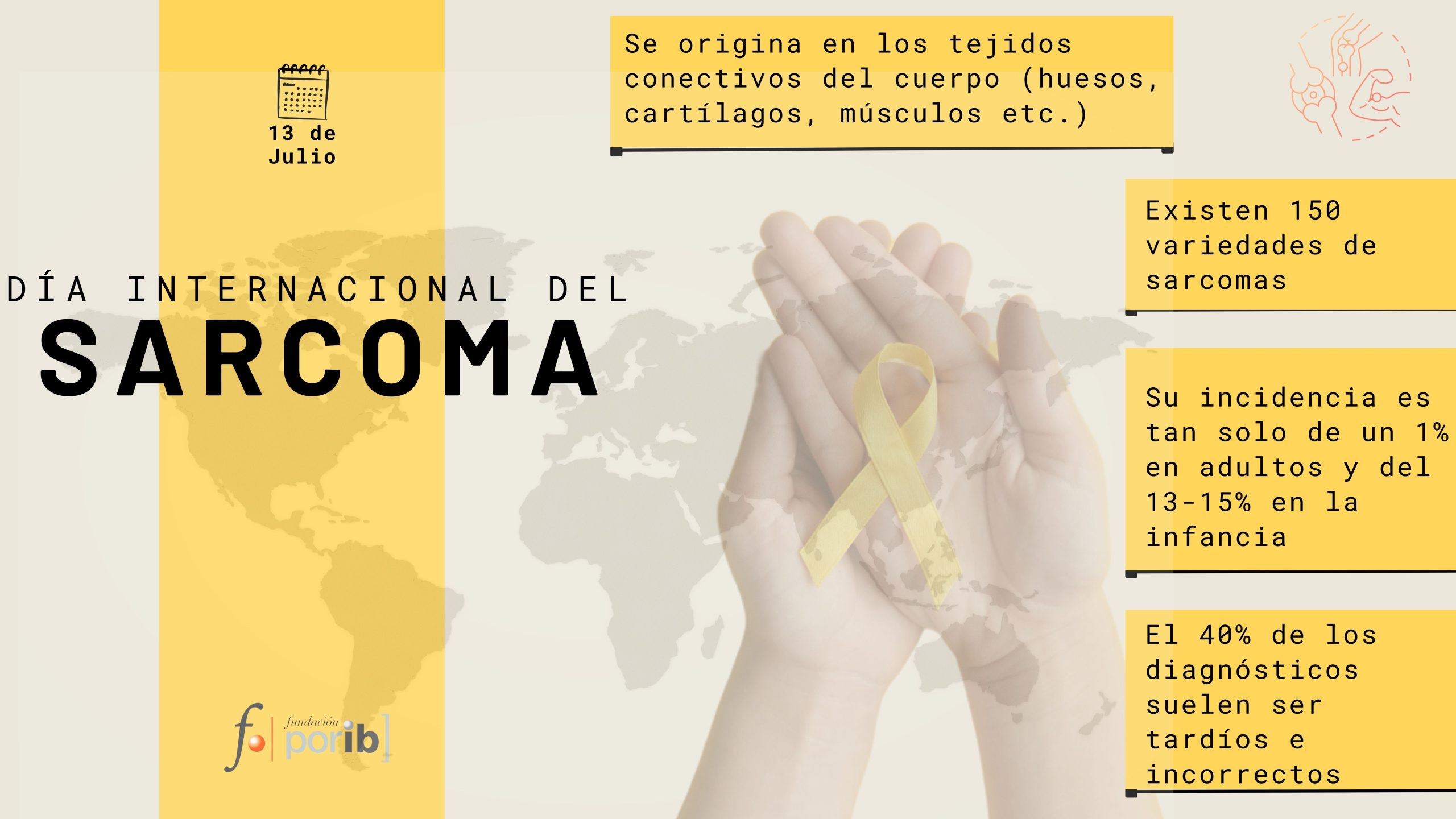 El próximo 13 de julio se conmemora a nivel internacional el día del sarcoma, con el objetivo de concienciar sobre este tipo de cáncer que cuenta con más de 150 variedades y que se origina en los tejidos conectivos del cuerpo pudiendo afectar a huesos, músculos, grasa, cartílagos, tendones y otros tejidos.
